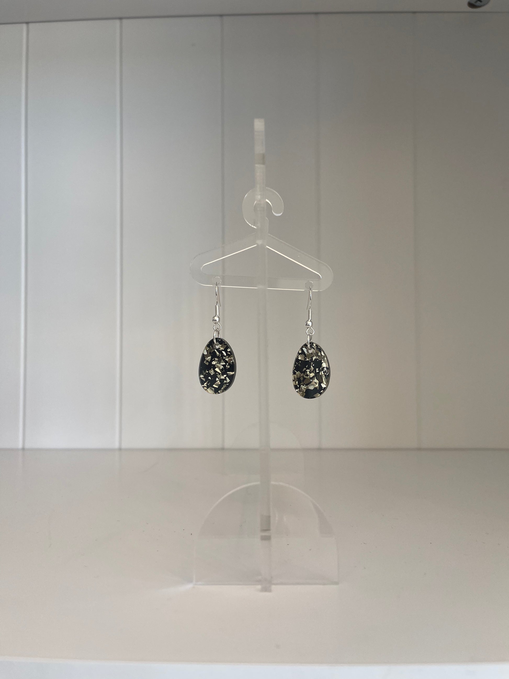Acrylic Teardrop Black and Gold Fleck on Surgical Stainless Steel Hook