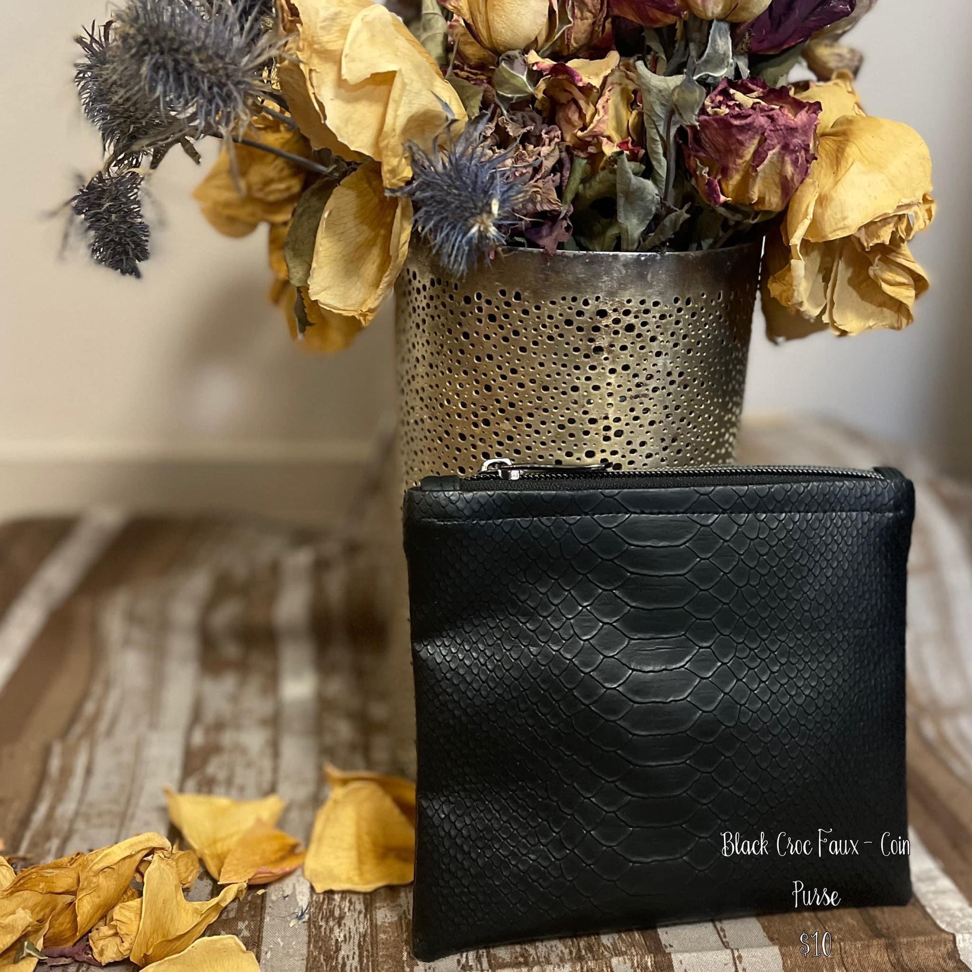 Black Croc Faux Coin Purse