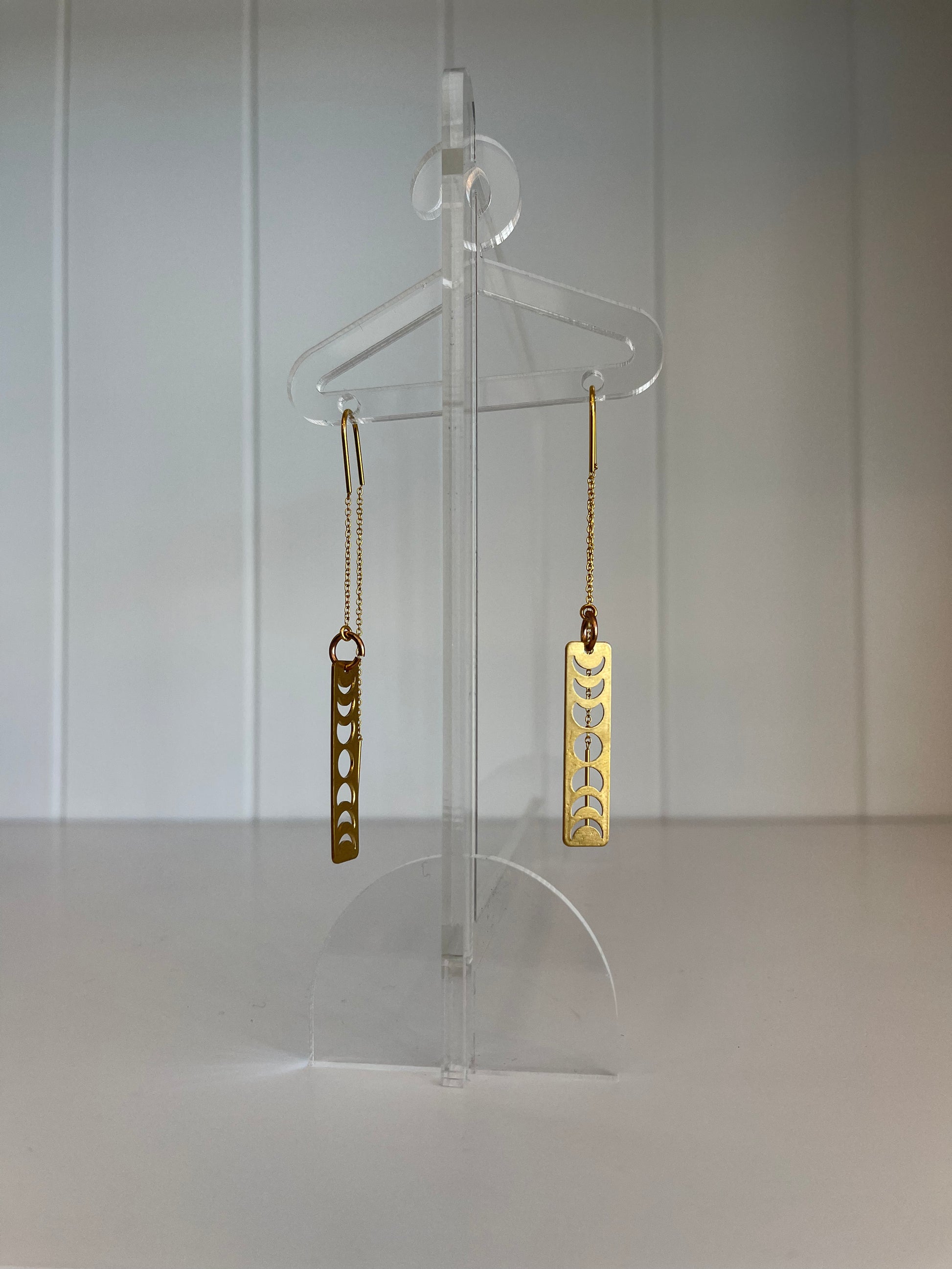 Brass Moon Phase Charm on Gold Plated Surgical Stainless Steel Thread Earrings