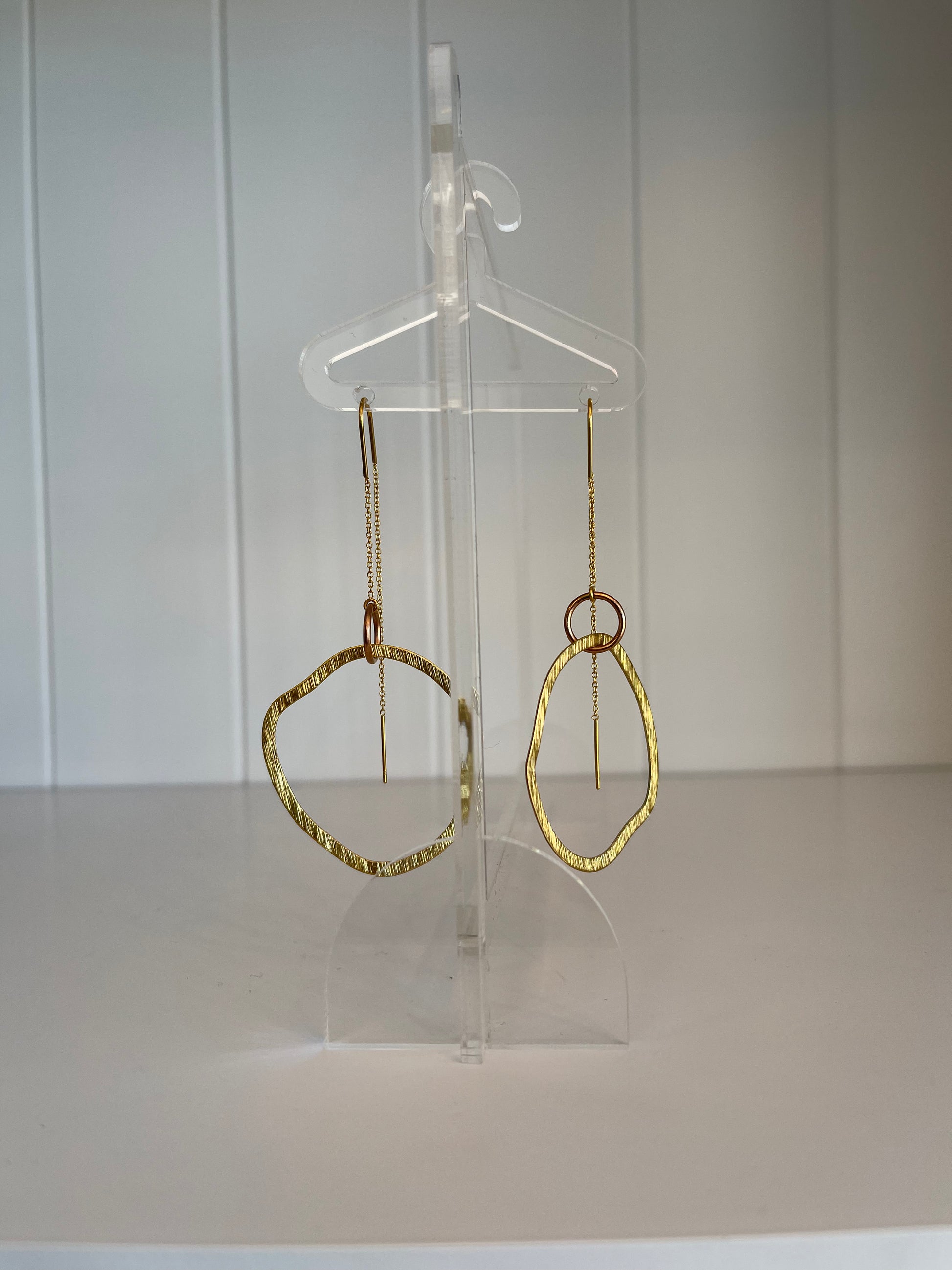 Brass Wavy Circle Charm on Gold plated Surgical Stainless Steel thread earrings