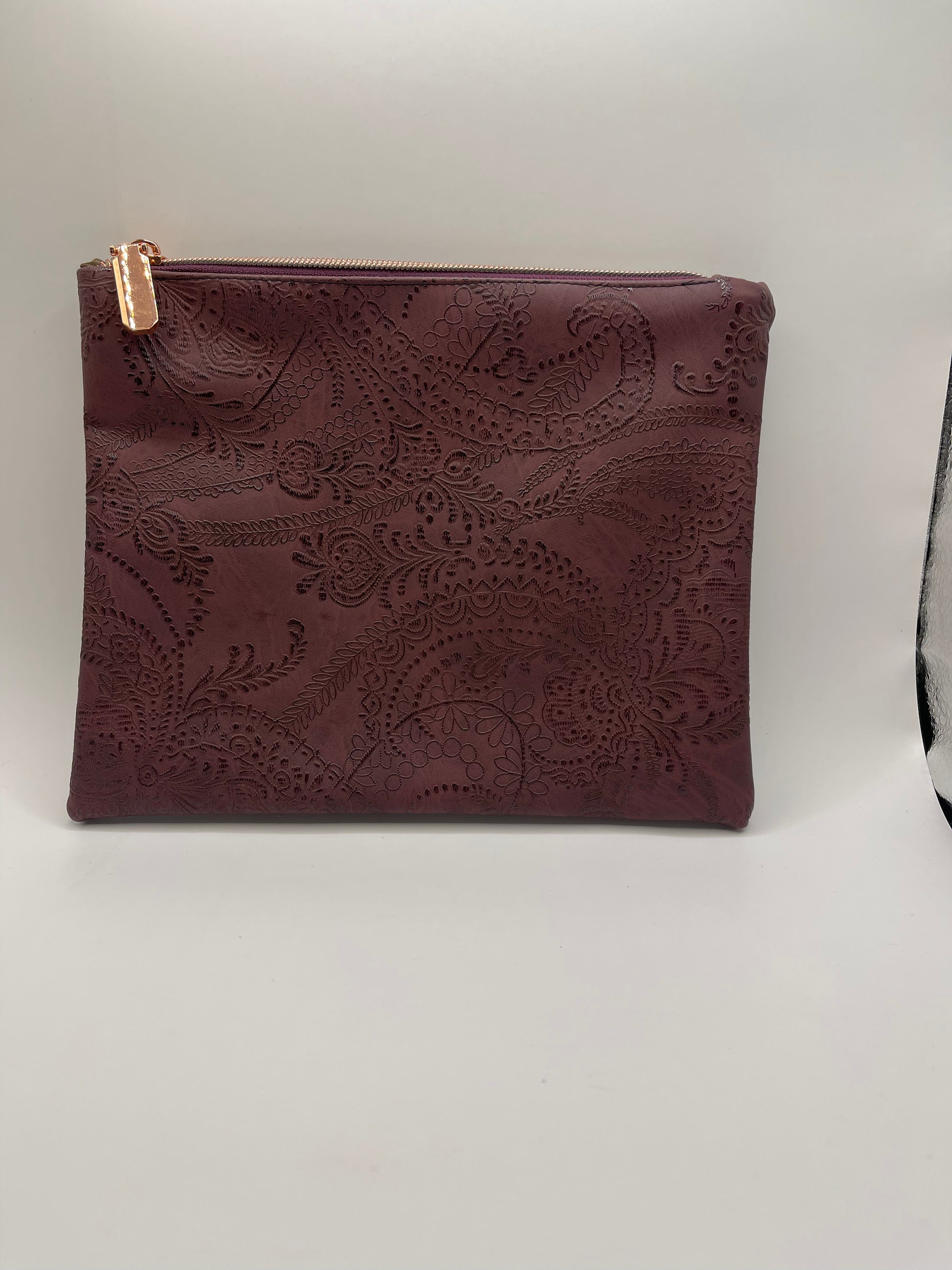 Burgundy Embossed Faux Leather Clutch