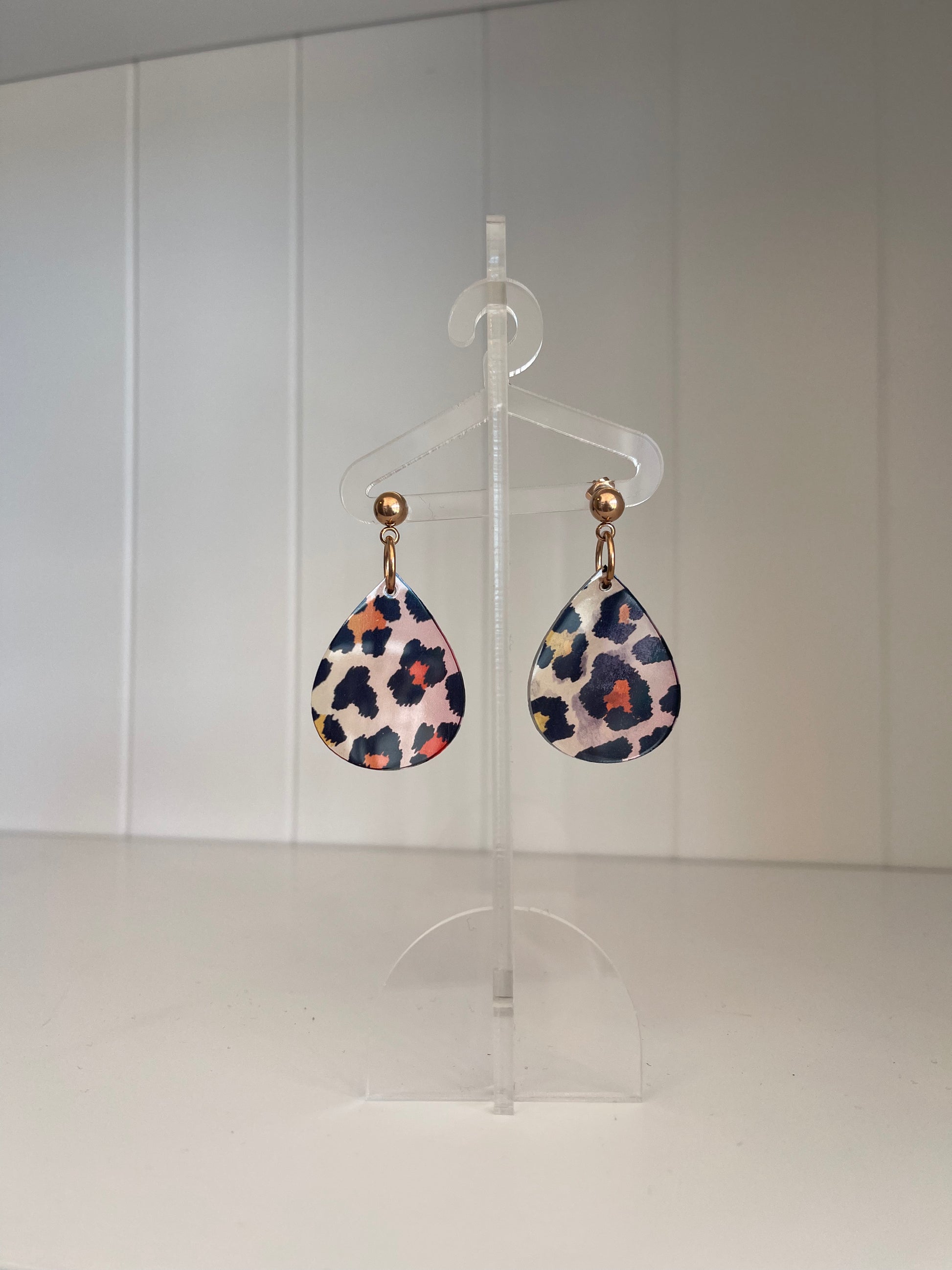 Acrylic Teardrop sublimated Leopard Print design on Rose Gold Plated Surgical Stainless Steel Posts