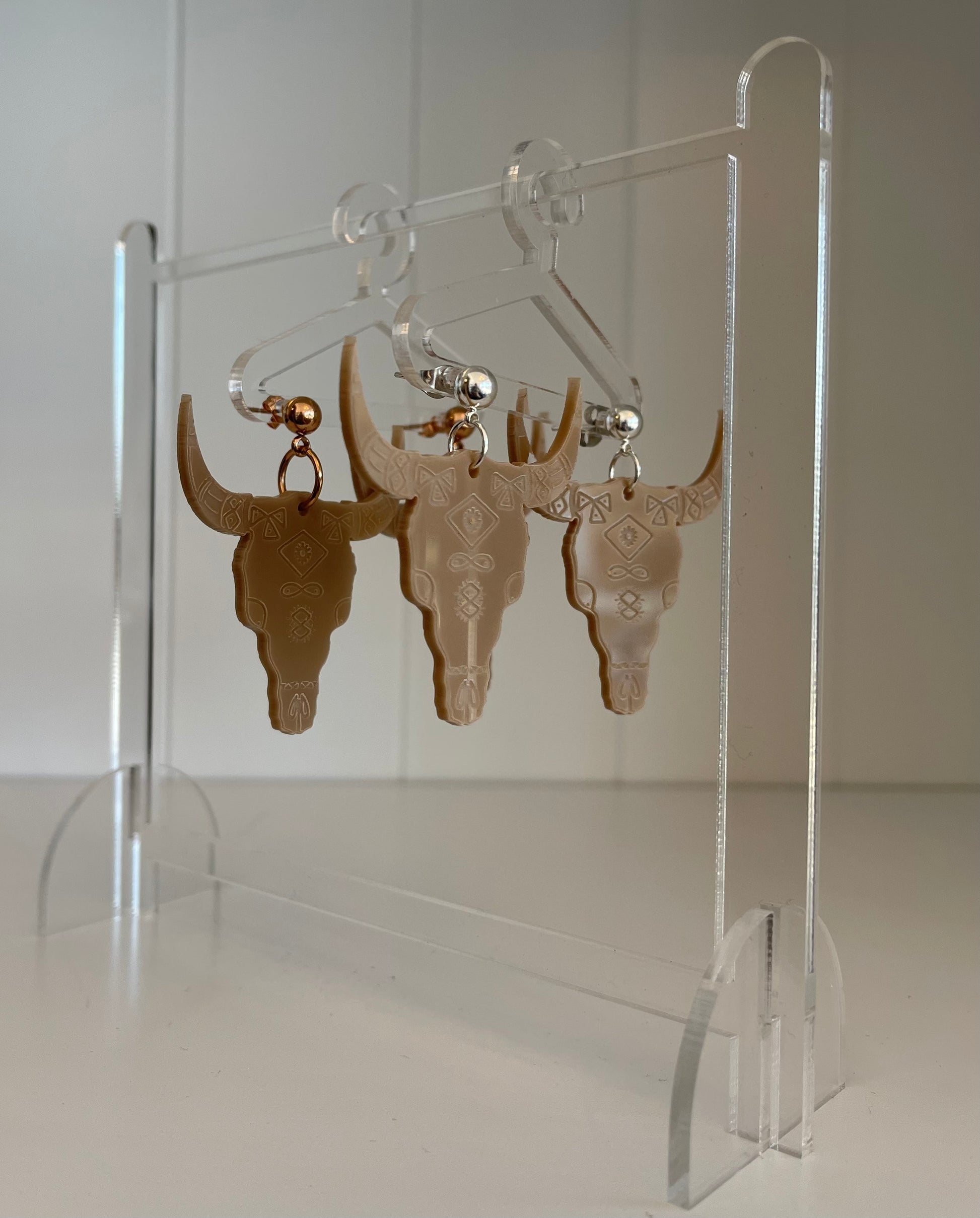 Long Horn Acrylic shapes on Silver & Rose Gold Plated Surgical Steel Drop Studs
