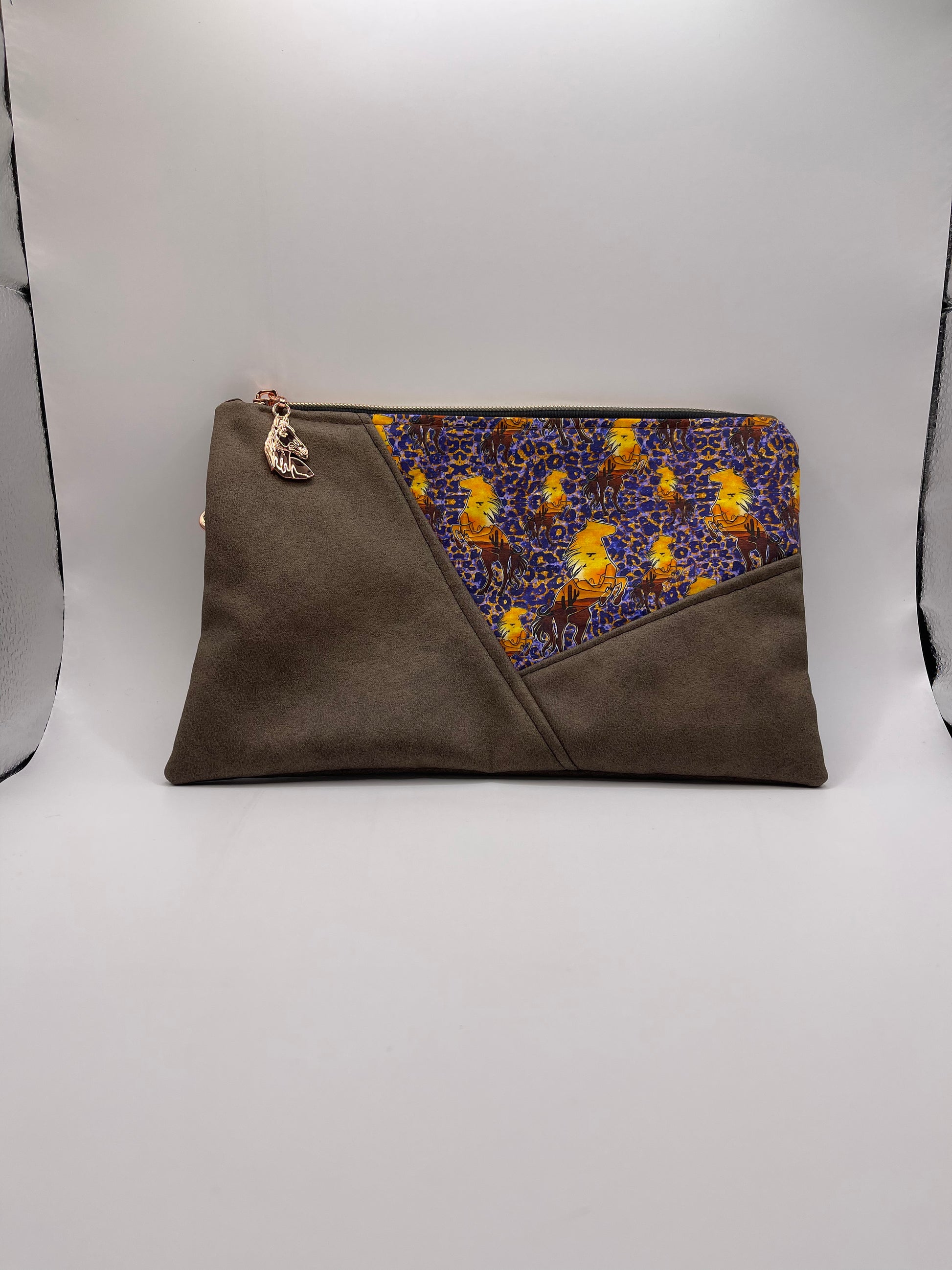 Faux Leather/woven Outter with woven lining D-ring on back for strap