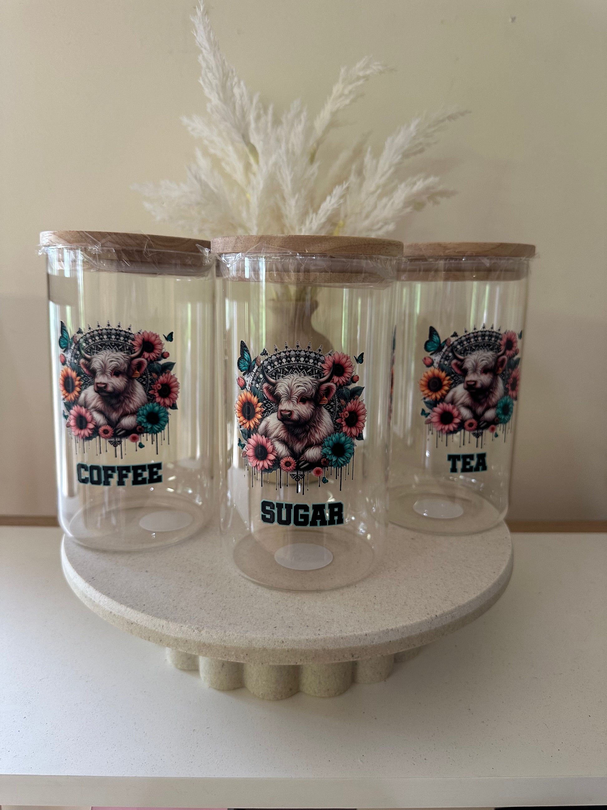 Tea, Coffee, Sugar Canisters - Highland Cows